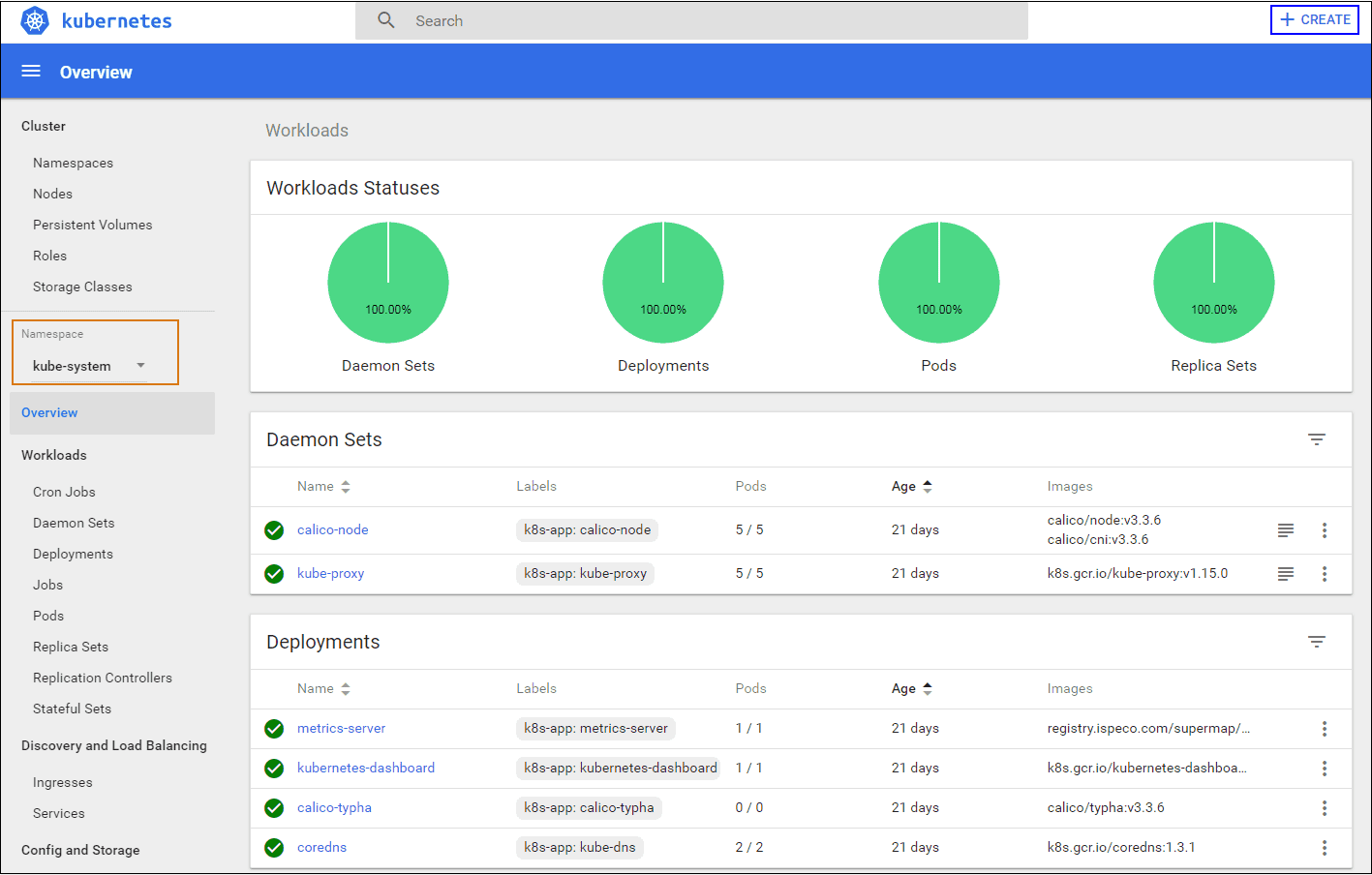Selects Kube-system in the Namaspace, and click on CREATE on the right corner of the page.