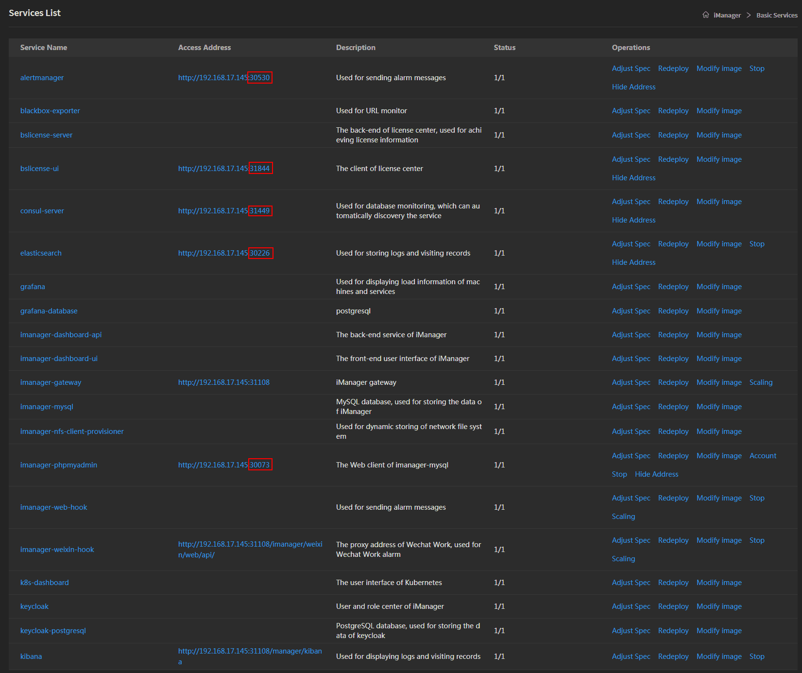 The basic services ports are automatically generated when deploying the iManager, please follow the steps to check and open the ports: