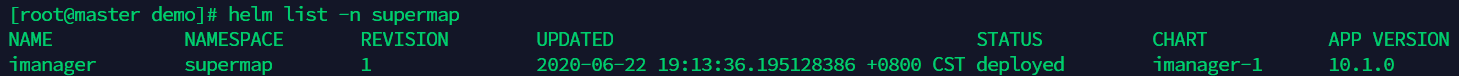 helm list -n supermap执行完命令后的进度条仅供参考,实际服务启动情况请参见kubernetes 的 dashboard 界面