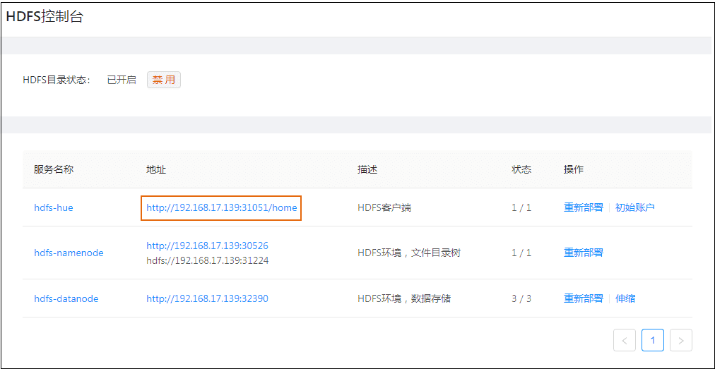 - 待开启完成后,点击控制台进入HDFS目录服务列表页。