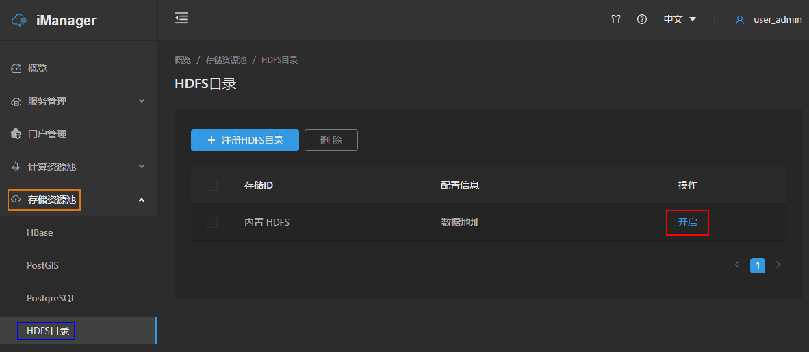 - 打开左侧导航栏存储资源池,点击HDFS目录;