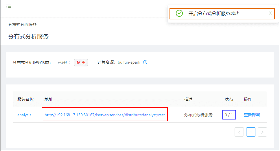 - 等待上图状态变为1/1时,则分布式分析服务准备就绪;