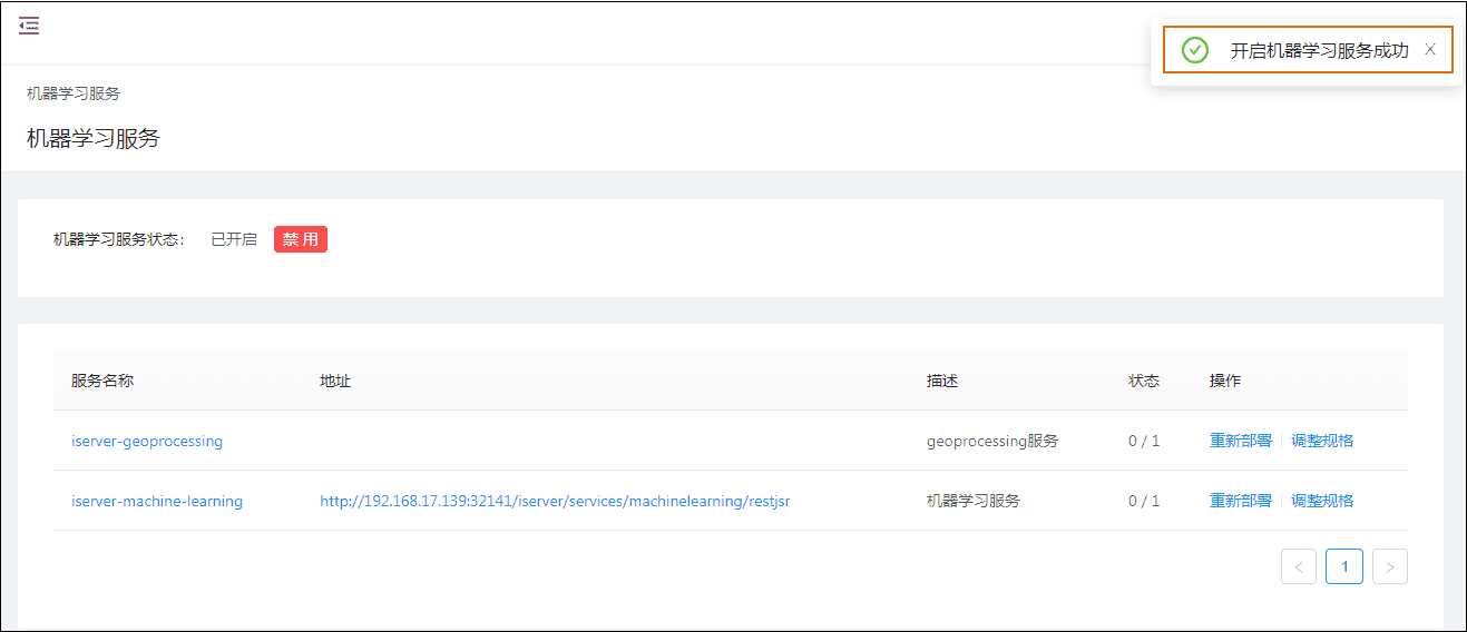 - 等待上图状态变为1/1时,则机器学习服务准备就绪;