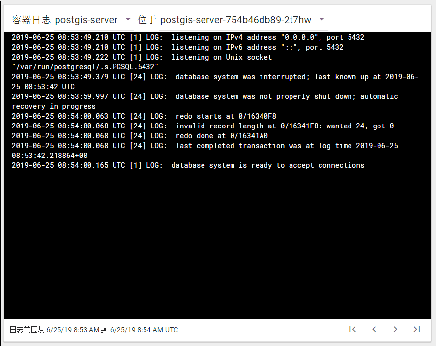 - 服务名称:列表中显示支撑PostGIS环境的主要服务,点击列表中的服务名称可进入节点详情页面,对容器进行管理,详情请参见容器管理。