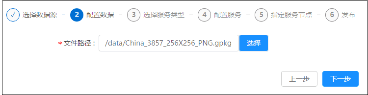 登录GIS云套件,点击iManager首页->系统管理进入iManager管理页面;点击左侧导航栏服务管理->服务实例;点击页面发布服务。选择数据来源GeoPackage文件,点击下一步。