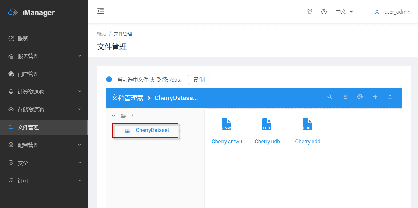 安装完后,需要等待服务全部启动,然后访问管理页面。点击管理页面左侧导航栏文件管理,在文件管理器中可看见gisDataPath下的文件目录;