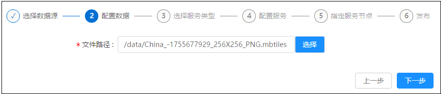 登录GIS云套件,点击iManager首页->系统管理进入iManager管理页面;点击左侧导航栏服务管理->服务实例;点击页面发布服务。选择数据来源MBTiles文件,点击下一步。