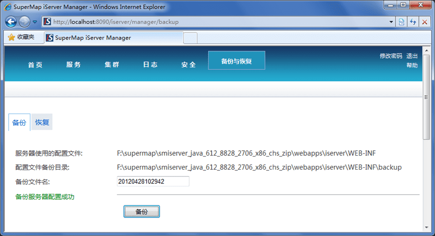 定期对GIS系统进行备份,增强系统抗风险能力,保证系统恢复能力。 GIS系统备份安全保护措施需要用户根据自身需求进行相关配置。 SuperMap提供GIS服务器配置的定期备份能力,主要通过可视化界面实现,简单方便易操作,如下图。