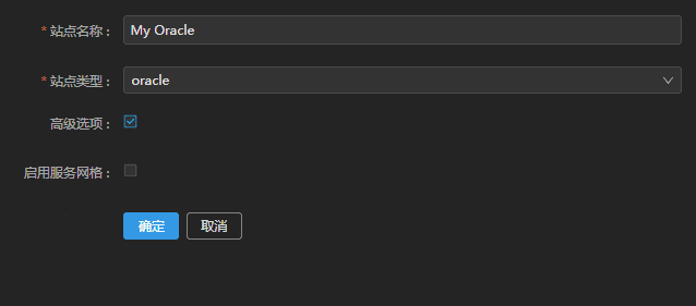 对定制站点进行命名,并选择站点类型为您添加的站点模板名称(以Oracle站点模板为例),如下图;