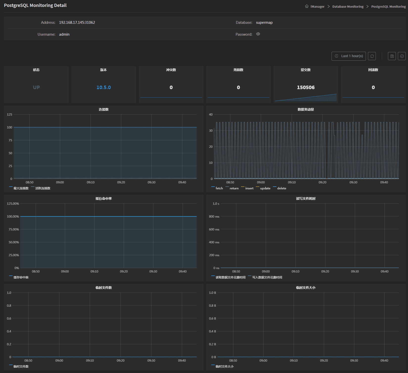 - 临时文件大小:数据库中因查询而写入的总数据大小。