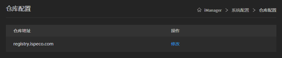 SuperMap iManager提供镜像仓库配置的查看与修改功能。管理员可通过