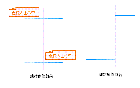 - 修剪操作只对与基线相交的线对象有效,而对于不相交的线对象将不进行任何操作。