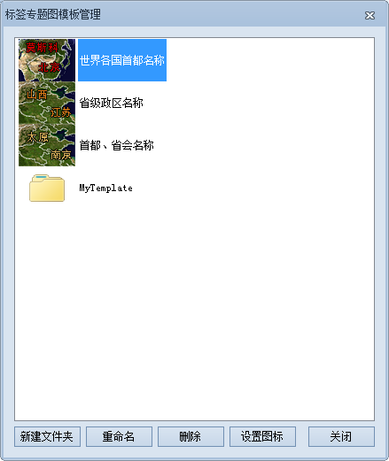 - 在该对话框中,可通过相关的操作,对专题图模板以及保存模板文件的文件夹进行统一管理。