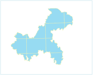 图:某区域实际的范围 - 若未勾选“动态投影”复选框,将投影不同的两个数据添加到同一个地图窗口时,会弹出“坐标系提示”对话框,可单击对话框中的“是”按钮,即可自动开启动态投影。
