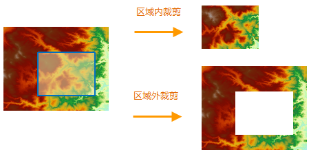 在进行地图裁剪时,可以对裁剪的方式进行设置,包括区域外、区域内两种方式:
