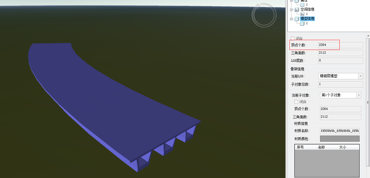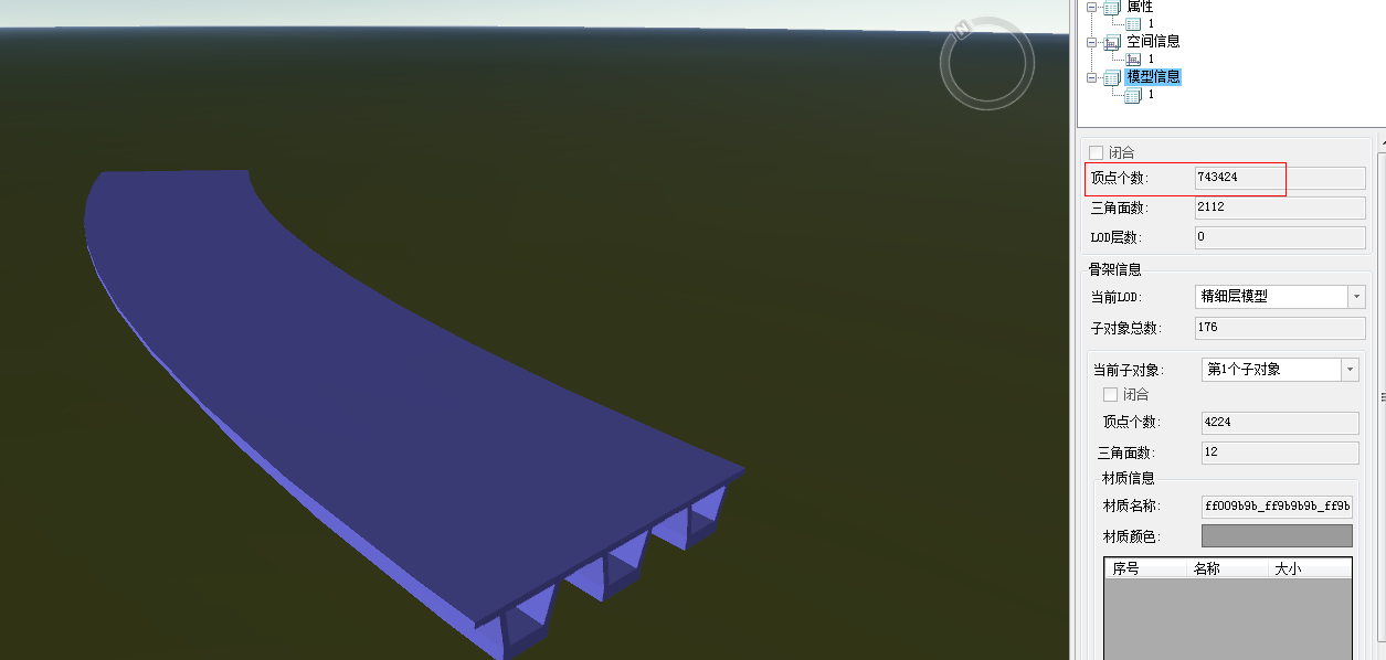 - 在场景中查看移除重复点模型对象的属性,在模型信息下可以看到顶点个数的改变,如下图所示: