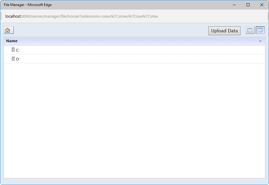 When the service is not local or uses IE10, Chrome, Safari browser (Due to the security control of the browser, SuperMap iServer can not get the exact path to publish working space), "local browsing" button can not be used, please use"remotely viewing".