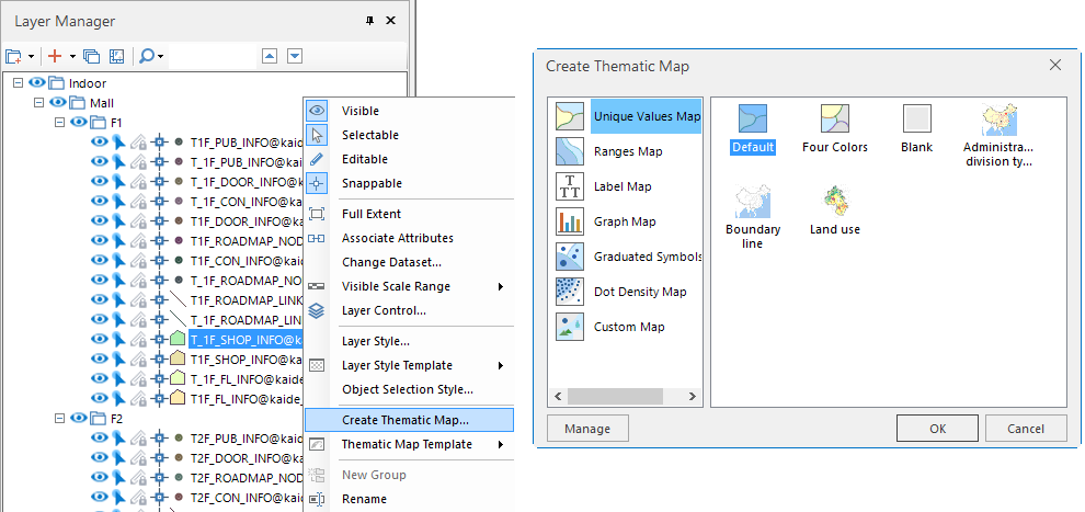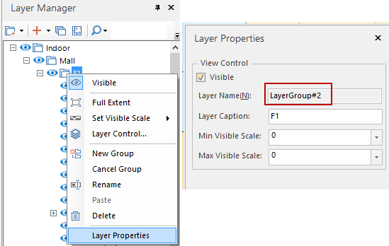 Step 1, create layer groups. Create layer groups for all floor data, and one group manages one floor data. Add datasets into the map window (that is opening your datasets in iDesktop), and then in the Layer Manager, click icon to create a new group.