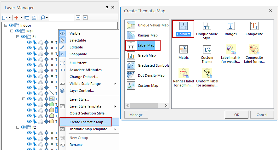Step 4: Create a label thematic map (on detail operations, please refer to how to create a thematic map for a region dataset).