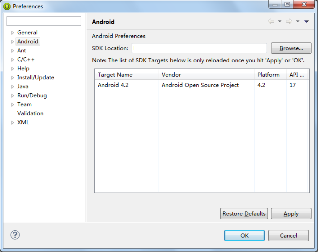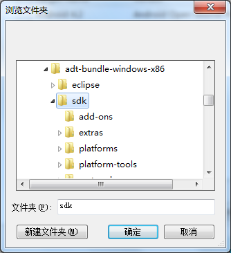 选择 adt bundle下的sdk路径, 确定后,在“Preference”窗口点击“Apply”,然后单击“OK”,完成sdk的配置。