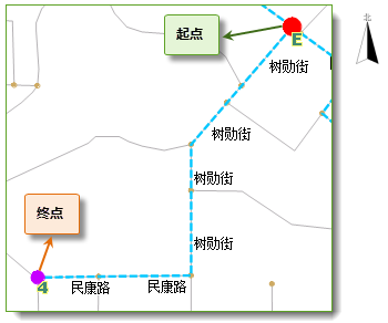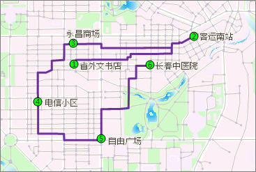 - 最佳路径分析:依照给定点的次序,在网络上查找依次经过这些点的花费最小的路径。