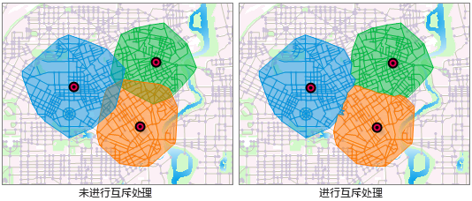 - 服务区分析:依据给定的阻力值(即服务半径)为网络上提供某种特定服务的位置(即中心点)查找其服务的范围(即服务区)。