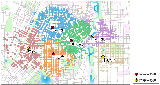 - 固定中心点是指网络中已经存在的、已建成的服务设施(扮演资源供给角色);