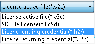 - License lending credential (*.h2r), used to lend a license of the network file license to the current computer.