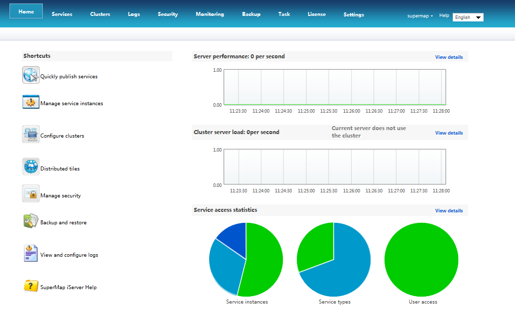Click Start → Program → SuperMap → SuperMap iServer 11i(2023)→ iServer WebManager.