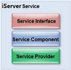All of GIS functions in SuperMap iServer can be encapsulated as services which are loosely coupled, focusing on interoperation. These services may combine with components, applications or other services in a certain way. A service in SuperMap iServer consists of three parts: service interfaces, service components ,and service providers.