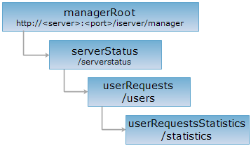 Perform GET request on userRequestsStatistics reaource http://localhost:8090/iserver/manager/serverstatus/users/statistics.rjson?startTime=1408982476609&endTime=1409104315939&expectCount=2000&statisticsType=UserName. You can get the service access number, and the rjson respondin result is as follows: