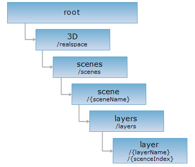 The layer resource represents a 3D layer identified by {layerName} or {layerIndex} in a URI. This resource can be used to retrieve the representation of a 3D layer in a 3D scene. The representation includes description information about the 3D layer, such as the name of the 3D layer, the type, the path of the corresponding 3D dataset, and the cache level of the data in use (only when the data in use is cached 3D data).