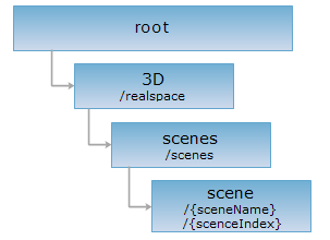 After a GET request is performed on the scene resource, a resource representation is returned (except for the representation in xml format) with the following structure (the resource representation is included in the entity body of the response message):