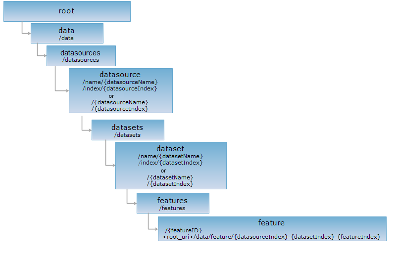 The feature resource can be acquired through the ID number (URI1) of the feature or the index number (URI2) of the feature.