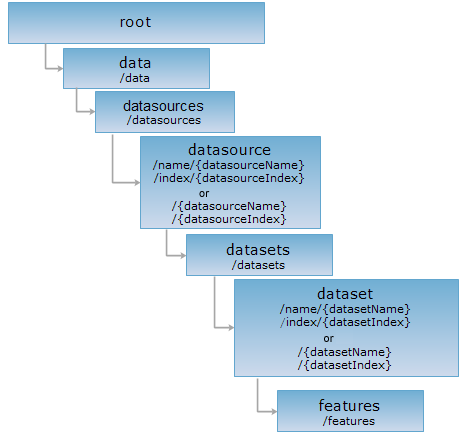 The features resource represents a collection of all the features in a dataset. By executing the GET request on the features resource, you can get the list of features in the dataset. When the dataset is a point, line or region dataset, executing the POST request on the features resource can add, remove, or modify the features in the dataset.