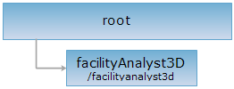 The facilityAnalyst3D resource is the root resource of 3D facility network analyses functions. Performing a GET operation on the facilityAnalyst3D resource can retrieve the set of names of available network datasets for 3D facility network analyses on a SuperMap iServer server.