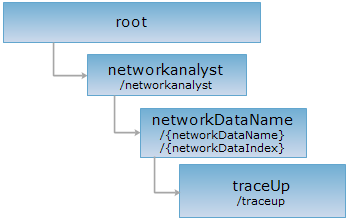 traceUp resource represents tracing upstream analysis. By sending a GET request to traceUp, the system will return the upstream arcs and nodes that flow into the specified arcs and nodes.