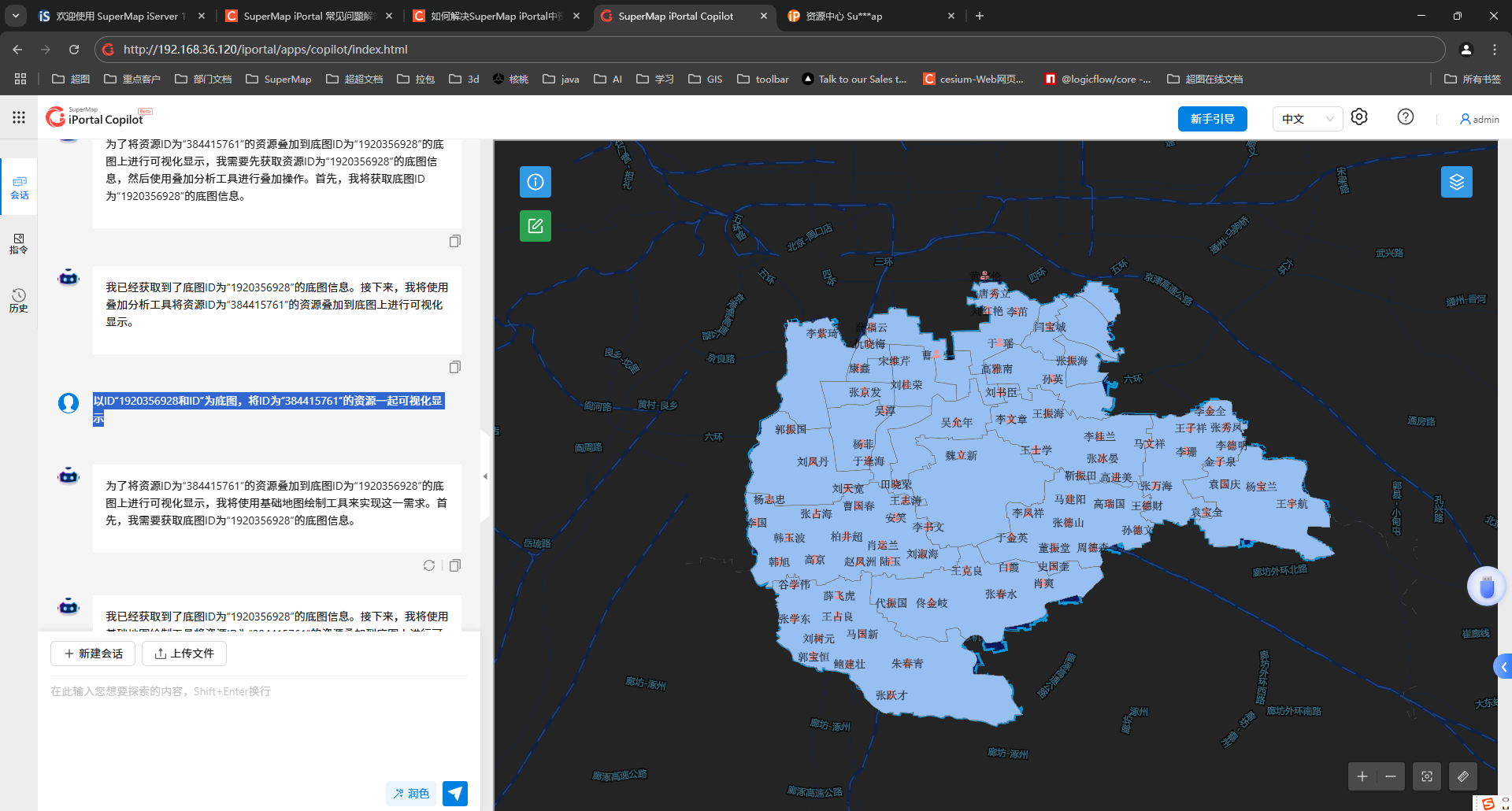 问题10:SuperMap iPortal AI助理中可以用什么指令,将两个地图类型的资源叠加到一张地图中可视化显示