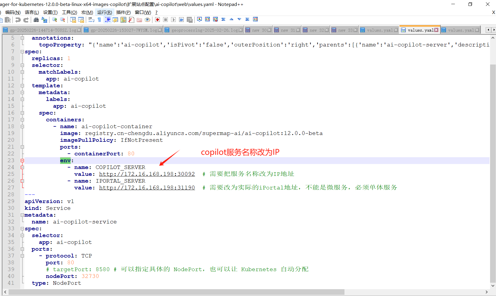 | 操作步骤 | 服务部署完成后,访问 http://[IP地址]/iportal/apps/copilot/index.html,页面报“网络连接异常”错误 |