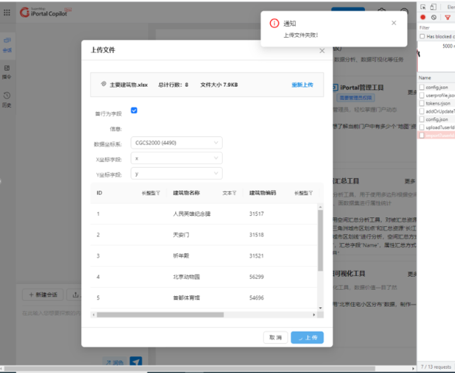 问题5:在 SuperMap iPortal AI助理中上传Excel文件失败