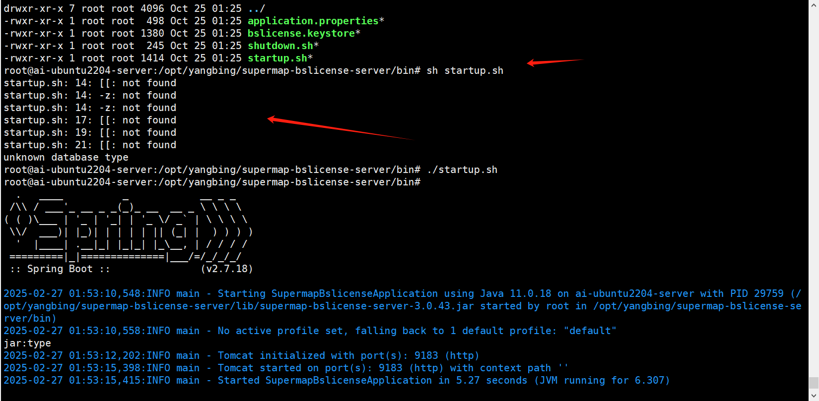 | 操作步骤 | 用sh startup.sh后台启动许可服务报错 |