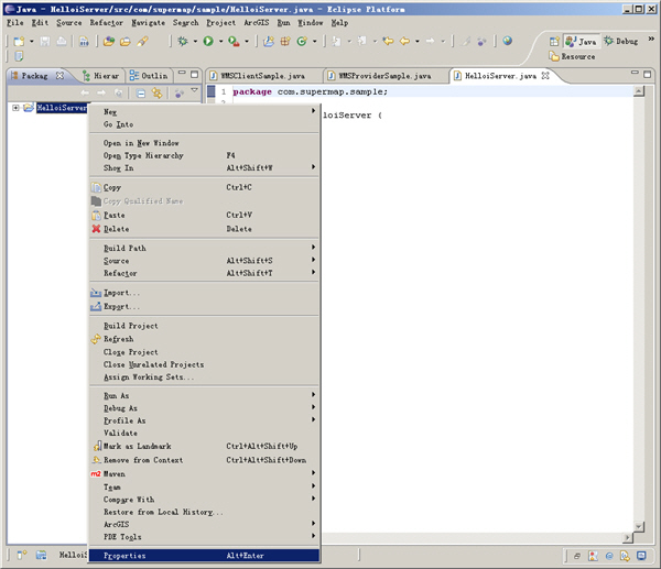 This project also uses the WMS interface, so you need to add other dependent libraries, such as, cal10n-api-0.7.4.jar, commons-codec-1.4.jar, commons-io-2.0.jar, commons-logging-1.1.1.jar, httpclient-4.0.3.jar, httpcore-4.0.1.jar, log4j-1.2.16.jar, slf4j-api-1.6.1.jar, slf4j-ext-1.6.1.jar and slf4j-log4j12-1.6.1.jar, all of which can be gotten from %SuperMap iServer Java_HOME%\webapps\iserver\WEB-INF\lib.