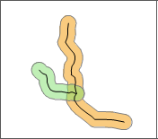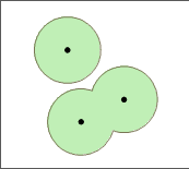 iServer supports to create buffers for two-dimensional point, line and region datasets. The third column of the following pictures shows the results when setting the dissolve field.