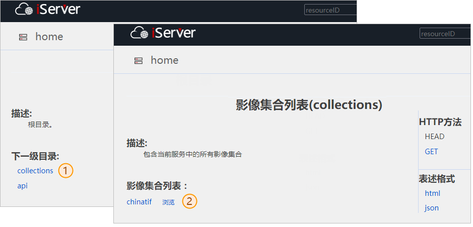 2.On the image service root directory page, click "Collections" in turn to enter the image collection list; Click "Browse" on the right side of the collection.