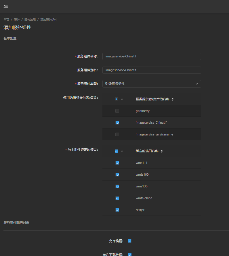 - Service providers: Select the imageservice-Chinatif image service provider created earlier in this article.