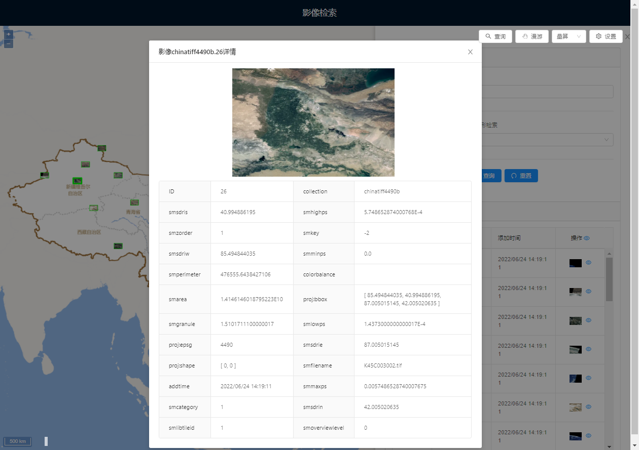 3. In the result image record, open the display status button on the right side of the image record. Map will display the corresponding image and can be browsed.