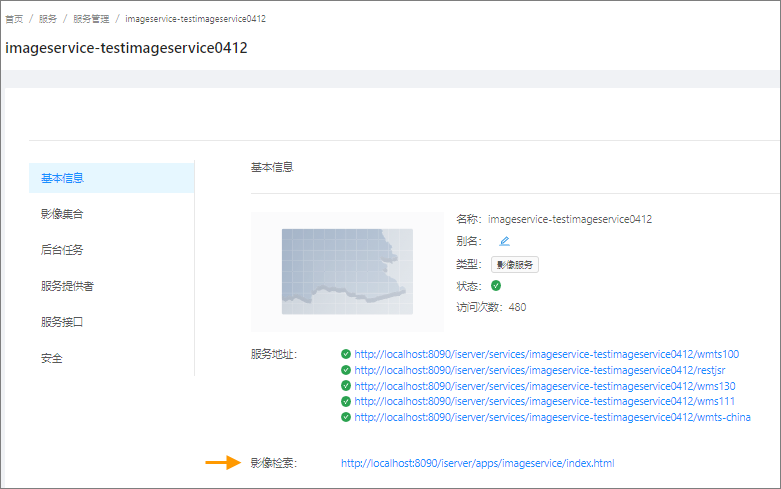 The image service provides an image query and retrieval page, supports the retrieval of image data in the current service through a variety of query modes, and supports the browsing and data downloading of search result.