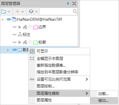 This method needs to obtain a display style templates in advance, and the template supports the use of the image layer property template (.xml) output from the desktop.