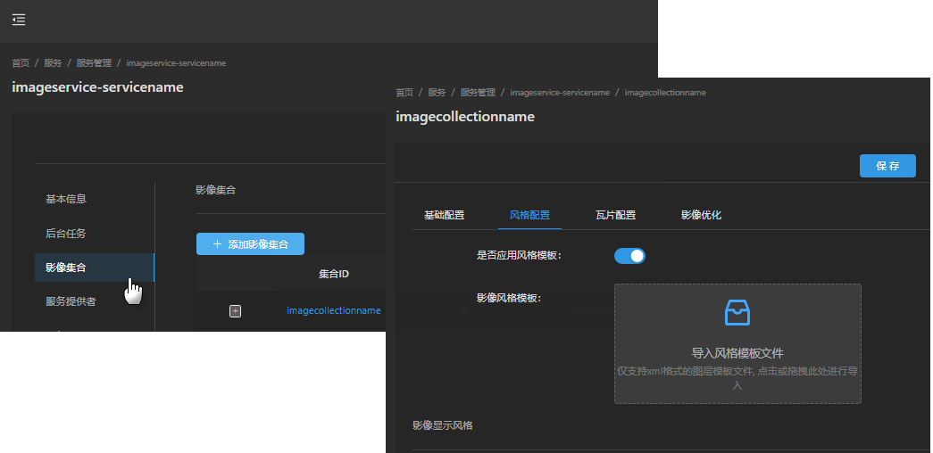 Image collection style configuration supports two methods: