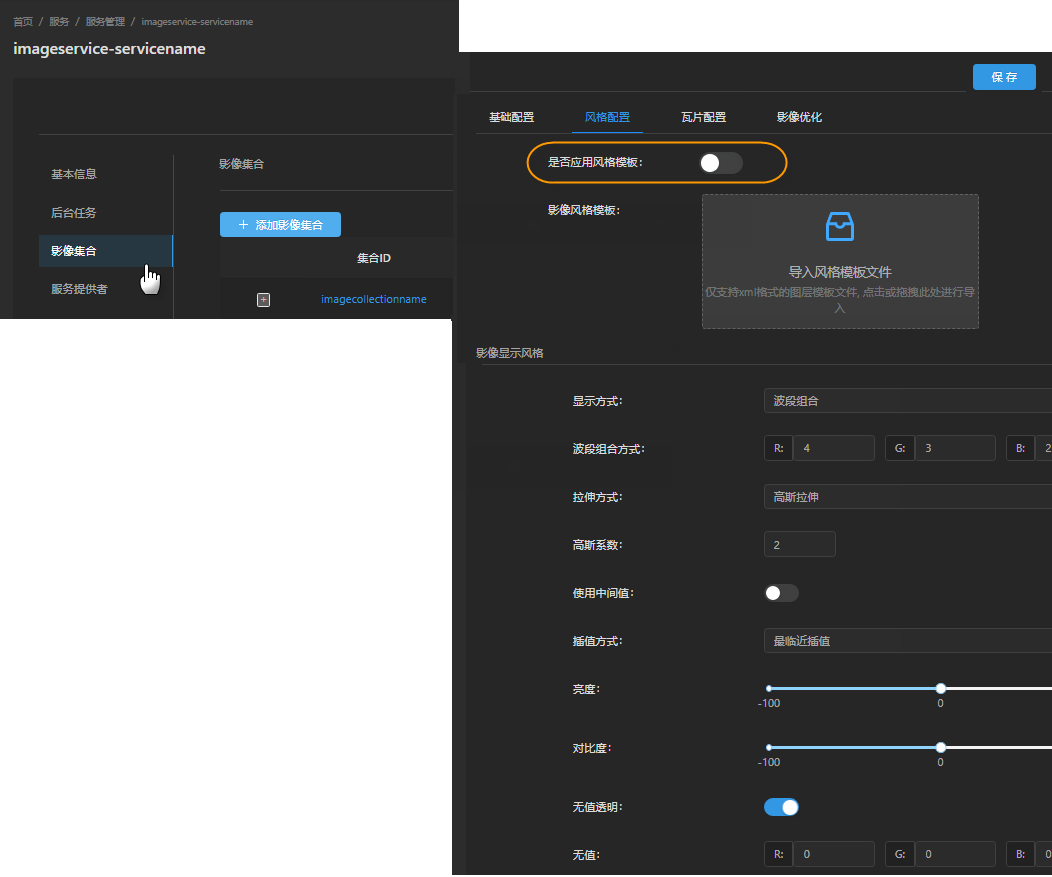 - Basic display style configuration: remove no-value, modify band combination display mode, modify image stretching mode and other simple styles.